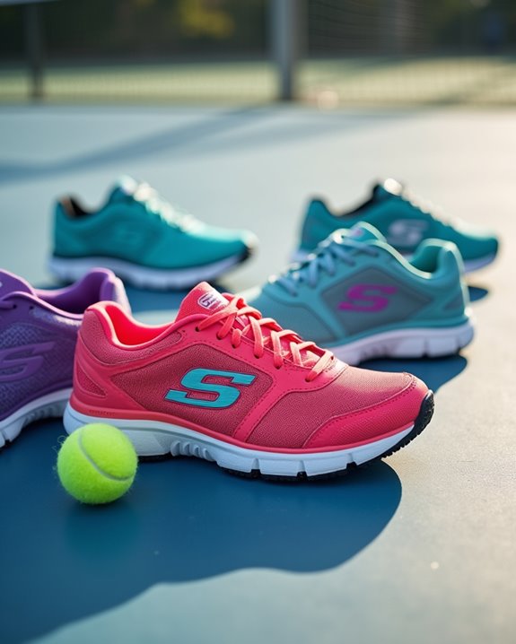 Imagine floating across the pickleball court like whipped cream on a hot cocoa—this effortless movement becomes possible when you choose Skechers’ lightweight pickleball shoes designed specifically for women.